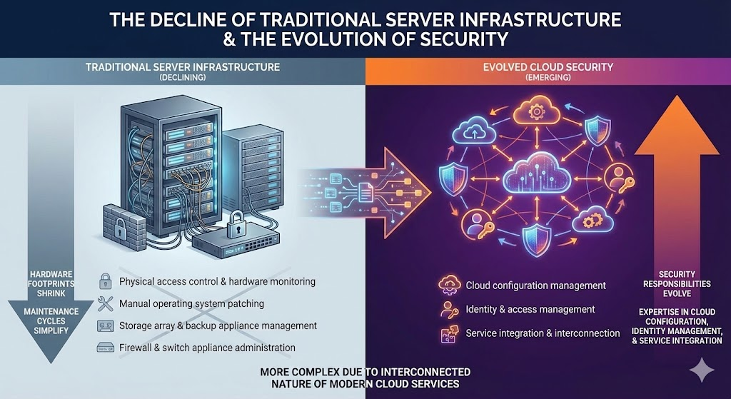 Yes, traditional server infrastructure is declining. Physical hardware footprints are shrinking, and many of the maintenance tasks businesses once depended on are fading away.