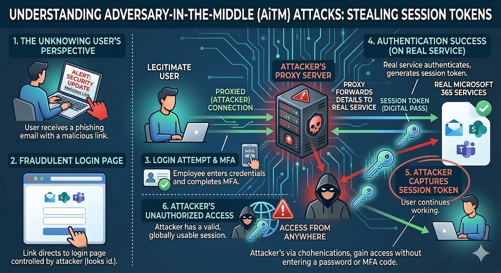 Adversary-in-the-Middle (AiTM) attacks represent one of the most effective ways to steal tokens.
