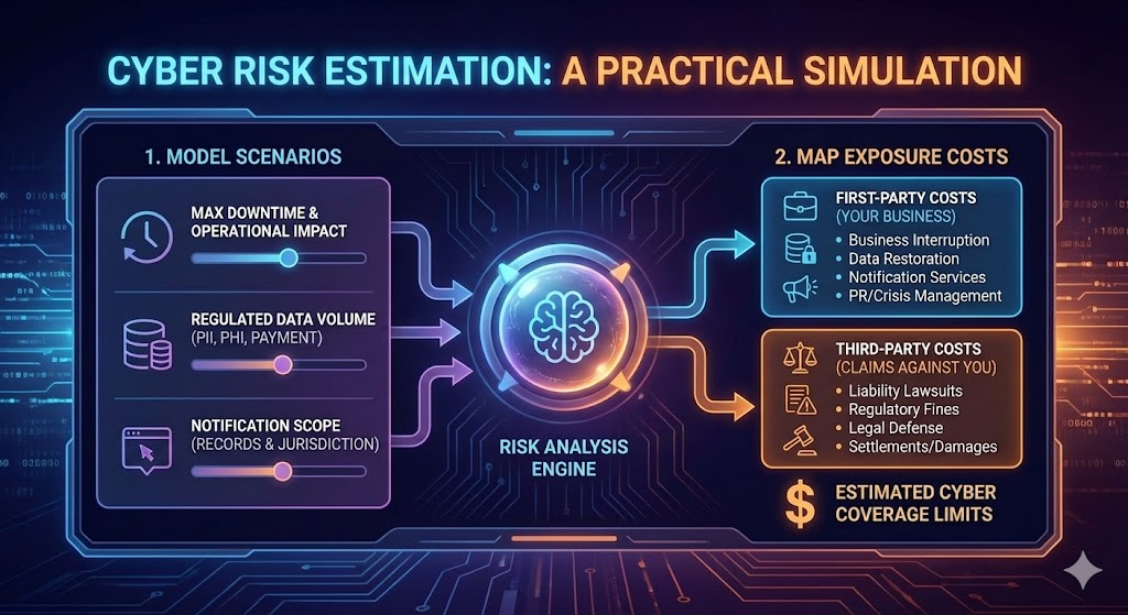 A practical way to size coverage is to model your credible worst day, then map costs to first-party and third-party exposure.